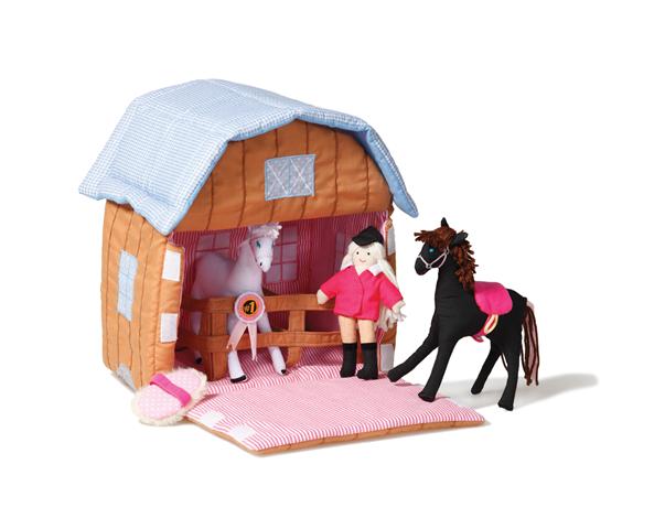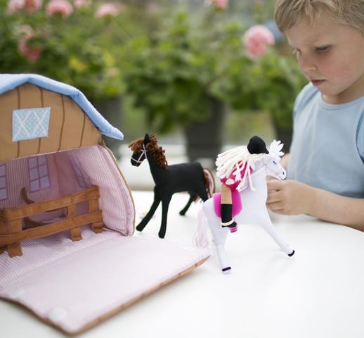 Deze mooie paardenstal met twee boxen is perfect speelgoed voor de kleine amazone!
